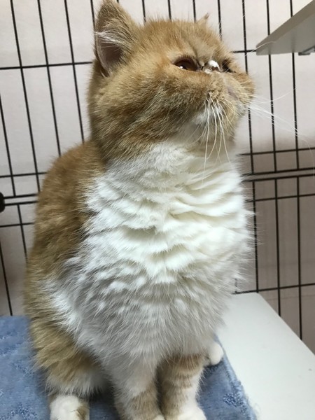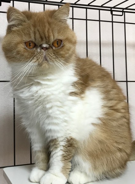 | 特徴(性格など) | ホワイト×レッドのエキゾチックです。 凄く大人しく人なつっこく抱っこが大好きな性格です。 トイレは完璧です。 |