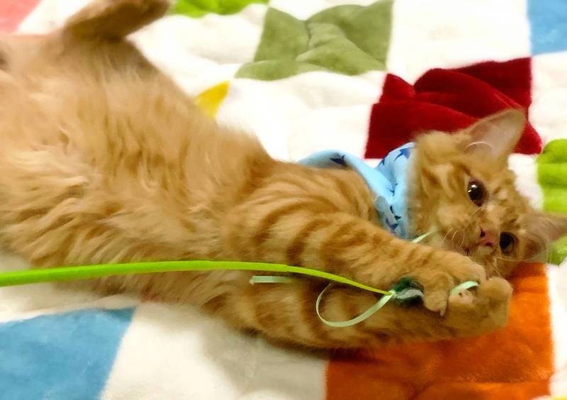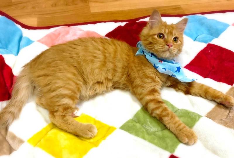 | 里親募集する理由 | 目の前が大通りで、猫たちが車に轢かれていた場所。 その場所の資材置き場にポツンと1匹の仔猫がいました。 次の日も同じ場所に・・・ 翌々日にもいたので保護しました。 保護当時の体重は1.1Kgとやせ細っていて食も細くて病弱だったため治療目的を兼ねて動物病院にて入院させていました。 治療の甲斐があり、体力回復し食欲旺盛で美味しいゴハンを食べてすくすくと健康優良ニャンになりましたので、里親さまを募集することになりました。 |