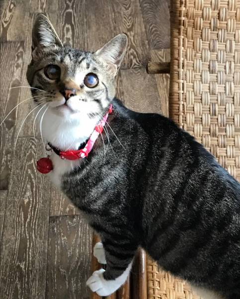 | 里親募集する理由 | 生後3ヶ月くらいの頃ポツンと道にた子です。 両目腫れていて白濁していた為、外で行きていくのは困難であろうと保護しました。 直ぐに1日5回の点眼を開始しました。 白濁は取れませんでしたが、目は見えています。 |