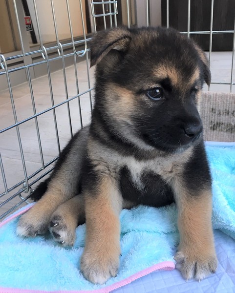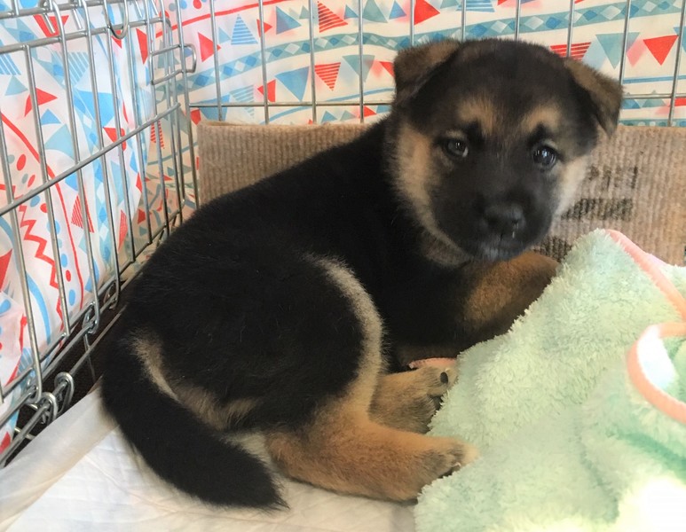 | 特徴(性格など) | 仮名:春陽くん 3月31日生まれオス 前脚後脚の先端に少しだけ白い模様と、胸にツキノワ模様があります。 生後1か月でペットシーツでの排泄を覚えました 賢いコのようです 将来は中型犬サイズになるのでは?と思います |
