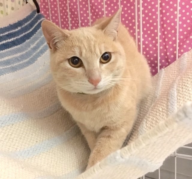 | 特徴(性格など) | 仮名:クレープくん 毛色:ミルクティ色 しましま長しっぽ エイズ・白血病共に陰性 3種混合ワクチン1回・去勢手術・ノミダニ駆虫・検便済 甘えん坊予備軍です。 前のお家から移動してまだ2週間、初めは怯えたお顔でしたが、撫でてあげると身体をう~んと伸ばし しっぽもピン!と立ててくれるようになって来ました。 慣れていない人にはまだ緊張するようですが、 甘えん坊になりそうに感じます。 ゴハンが大好き。よく食べます。 おやつに出る猫ちゃん用ミルクが楽しみで ミルクの箱を見ただけで目がまん丸に(笑)嬉しそうにします。 現在2キロを少し超えた所です。 クリーム君とは兄弟です。見た目同じで全く区別が付きません。 緑色の首輪がクレープ君、 青い首輪がクリーム君です。 見た目も性格も同じです(笑) 2匹一緒でも、1匹飼いでも、先住猫さんがいらっしゃるお家でも可 ペットでは無く家族として大切にして下さる方、脱走防止にご協力いただける方 ご縁をお待ちしています |