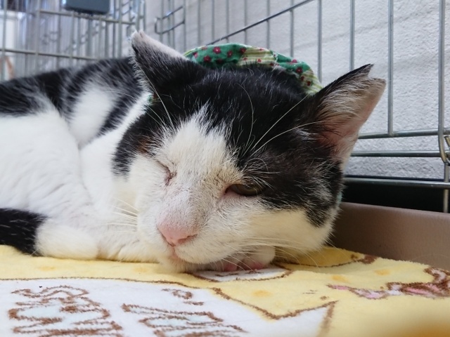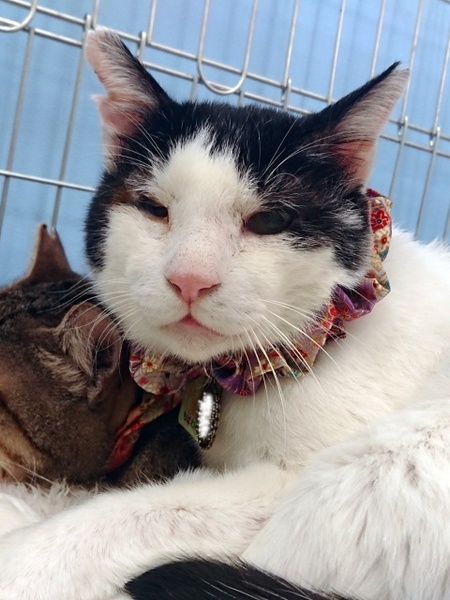 | 特徴(性格など) | ☆☆☆ご希望の方は、以下のアンケートフォームにご記入の上、送信してください☆☆☆ ねこ親希望アンケート→ http://chibawan.net/contactform_cat 【猫No】2731 【愛称】とみじ 【性別】オス 【年齢】推定9〜11才(20/3/20現在) 【毛色】黒白 【体重】4.92㎏(20/03/20現在) 【状態】去勢手術済、ワクチン接種済、血液検査済(エイズ陽性・白血病陰性)、マイクロチップ装着済、ノミダニ駆除済、トイレ躾済・駆虫薬投与済、一部抜歯済み、右目に萎縮有り(経過観察中) 【保護場所】横浜市 【日記】tokidokitukibito(インスタグラム) https://www.instagram.com/tokidokitukibito/?hl=ja 【経緯】TNRでの保護 【性格】穏やかでシニアらしい落ち着きがある甘えん坊なおじいちゃんです。 以前より気持ちを素直に伝えてくるようになり、甘えたい時には甘えたい!と頭突きをしたりすり寄ったりと、他の猫に負けじとしっかりアピールするようになりました。 時折見せる表情は子猫のような愛らしさがあり、撫でると身を任せ、気持ち良さそうなお顔を見せてくれます。 撫でてもらう事を大変好む反面、抱っこは嫌がります。 おもちゃ遊びも大好きです。 音が鳴るおもちゃを好み、シニアとは思えない素早い動きをしながらハッスルして遊んでいます。 現在は他の猫達と一緒に室内フリーで生活してます。 他の猫と好んで仲良くする事はありません。 猫にちょっかいを出される事を極端に嫌がる事から、1頭飼い もしくは穏やかな性格の猫となら同居に問題は無いと思います。 物が見えにくいのか上から触ったり急に物が近づくと嫌がります。 普段の生活に支障はありません。 時折、思い立ったようにしばし大きな声で鳴き叫ぶ事があります。 声をかければ鳴き止む事は多いですが、環境が変わると酷くなる可能性はあります。 シニアではありますが、人に甘える事や撫でられる事を心地よいと知り、至福の時間として楽しみにしています。 『とみじ』と一緒に、のんびり楽しく過ごしてくださる方とのご縁を探しています。 【補足事項】右目に萎縮があり経過観察中です。 目やにが出やすいですが、ケアも嫌がらずにさせてくれます。 目薬などの治療は現在していません。 【その他】愛情いっぱいの終生飼養、ネコにあった生活スタイル、完全室内飼育、定期的なワクチン接種等の健康管理をお約束頂け、脱走防止対策や迷子防止に細心の注意を払ってくださる、神奈川県近県のご家族で、アンケートを快くお答えいただける方からのお問い合わせをお待ちしております。 |