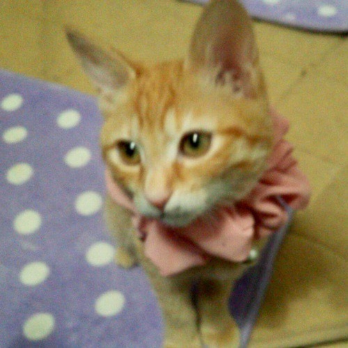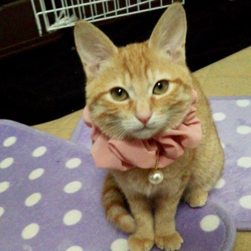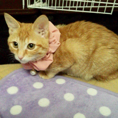 | 特徴(性格など) | 4月21日(日)ミャオ!ねこのおうち譲渡会に参加しますので、そちらに会いにいらしてください。 ◇仮名◇しずかちゃん ◇毛色◇茶とら ◇性別◇メス ◇性格◇ ちょっと気難しい、プライドが高いお姫さまタイプ。慣れるまで、少し時間がかかるかも知れません。エントリーしている、同じ茶とらのキウイとペアでの譲渡希望です。 |