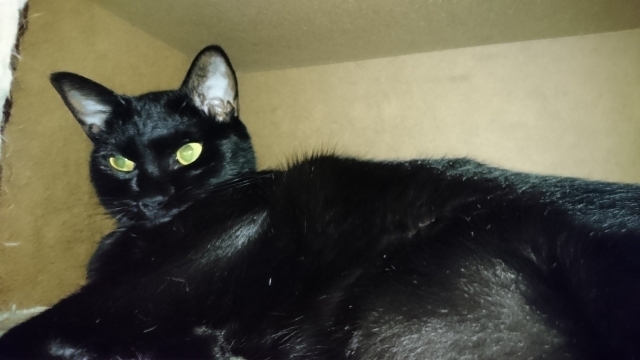 | 特徴(性格など) | 茶白と黒の兄妹猫です。 茶白はようやく人になついて来て背中のマッサージや餌を催促して来ます。 黒はまだ少し臆病で背中のマッサージ以外は隠れている事が多いです。 兄妹は仲良く一緒に寝てお互いの毛づくろいをしあって関係良好です。 |