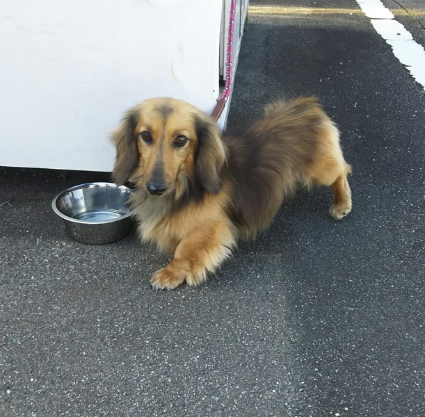 | 特徴(性格など) | ミニチュアダックス 毛色はシェーテッドクリームだと思います。 体重5kg 人が大好きな甘えん坊男子です! ♂犬には吠える事があります。 |