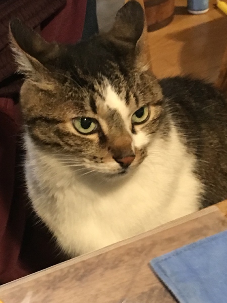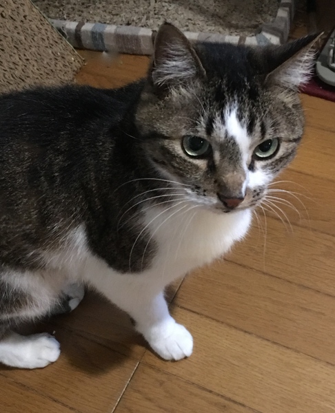 | 特徴(性格など) | 名前は、ミーノスケ。オスです。 白地にキジトラ柄、シッポはまっすぐ、ふっくら。かなり大きな猫ですが、うちに来る前にゲッソリ痩せていまして、今少しずつ肉がついてきてます。 写真の通り男前であります^^ 大人しい子であまり激しく遊ばないのですが、人がキッチンでお魚を焼いてたりすると瞬間移動の如く俊敏な動きをします。猫同志ではなつっこくもなく、ケンカもなく、といった感じです。人間の子供は少し苦手ですが、共存可能です。人にも猫にも攻撃性ゼロです(^.^) 去勢手術済み。ワクチン接種済み。レボリューション済み、虫下し済み。血液検査マイナスです。健康体です! 毛づやヨシ! 最初は何も食べてくれなくてビビリましたが、今は何味のカリカリでもモリモリ食べています。 食欲は普通くらいです^^ |
