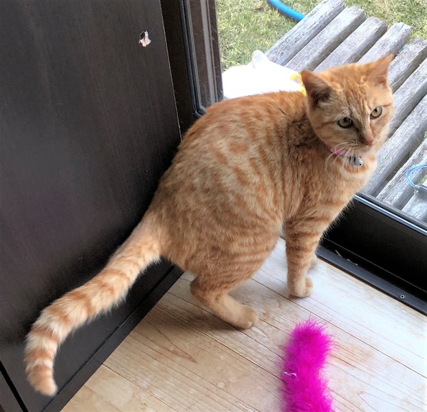 | 特徴(性格など) | 【猫の仮名】すみれ 【毛色・柄】茶トラ(担当 桂) 珍しい全身茶トラの女の子です。尻尾は長くてまっすぐ。 臆病ですが猫じゃらし系のおもちゃは大好きです。人見知りして小さくなっててもそれを忘れて飛びついて遊びます。好奇心があります。 健康状態 良好 ●避妊手術 済 ●ウイルス検査 陰性 ●ワクチン 1回 ●蚤取り 1回 ●駆虫 1回 ●便検査 1回 ●シャンプー 1回 |