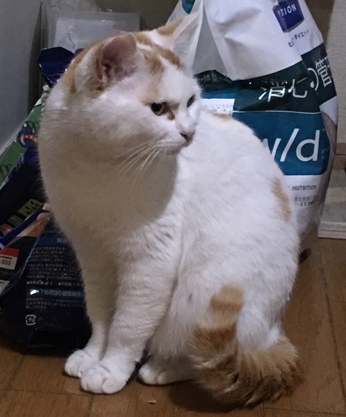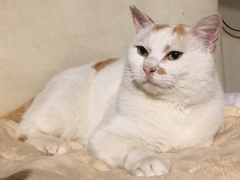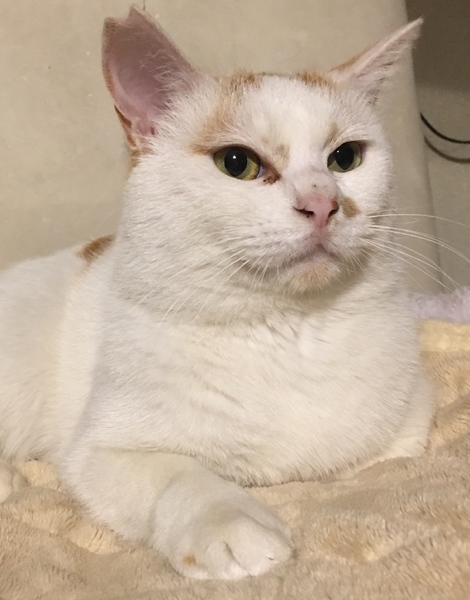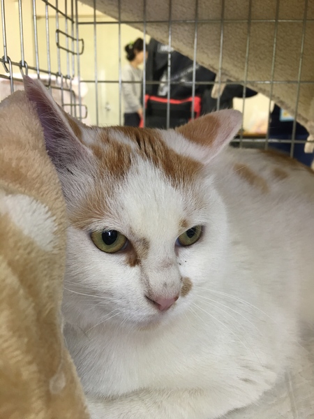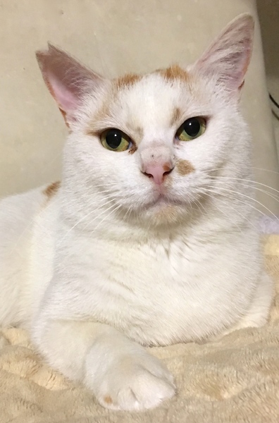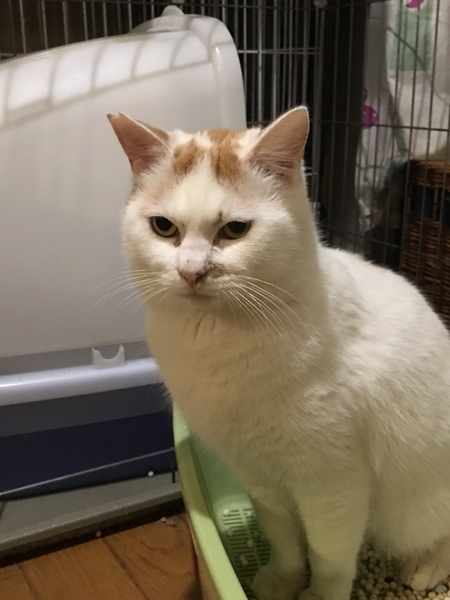 | 特徴(性格など) | 名前は、麦(むぎ)くん。オスです。 白地に茶トラ柄、シッポはまっすぐタヌキのしっぽみたいです。オスにしては小柄です。 写真の通りぶさかわ系で鼻の低い可愛らしい顔をしてます^^ 耳にカットが入っています。 大人しい子で控えめです。たまに黙々とオモチャで遊びます。抱っこオッケー。 猫に対しても人に対してもフレンドリーとまではいかないけど、攻撃性0で、イイ距離加減でケンカもありません。 あおんあおんと低めの声で鳴きます。(ごはんごはん、と言っているようです^^) 去勢手術済み。ワクチン接種済み。レボリューション済み、虫下し済み。血液検査マイナス、健康体です! 毛づやも良くなってきました。 カリカリを食べてます。食欲旺盛です! |