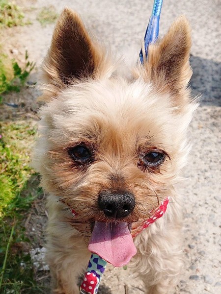 | 特徴(性格など) | ヨーキーの女の子です。元気でお散歩大好きな女の子です。人が大好きで、甘えん坊さん。エサもよく食べています。とびきりの笑顔で笑います。 心臓の薬を1日1回あげています。 ですが、とても元気いっぱいです。どうか、愛ちゃんに会いにきてください。顔を見にきてください。 |