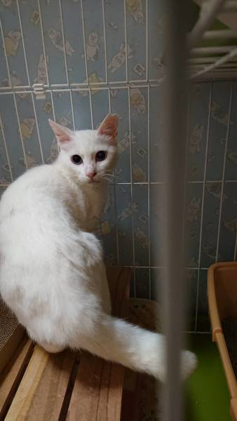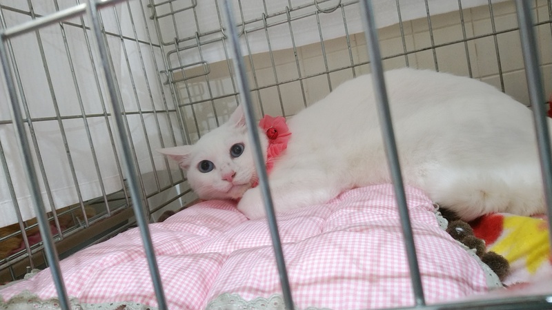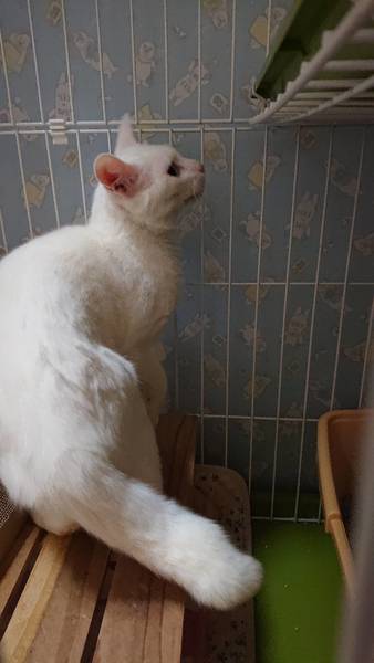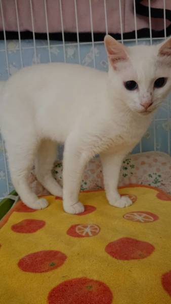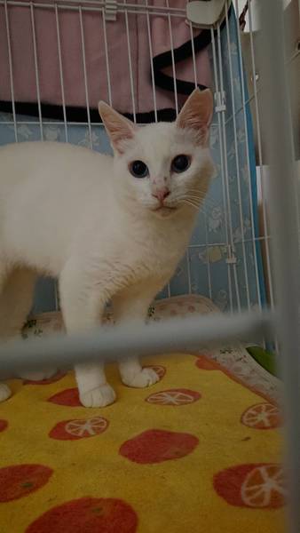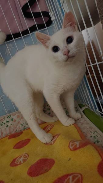 | 特徴(性格など) | 真っ白でおしっぽは短めで太いです。 目が綺麗ですが、左目にほんのすこ~し星が入ってます(よく見ないと分かりませんが) 大人しい良い子で飼いやすいと思います。 白血病陰性・エイズ陽性ですが私も20年来エイズの子を共に飼っていますがうつったり発症の経験はしていません。怖がらなくてよいと思いますが、気になる方はおやめください。 |