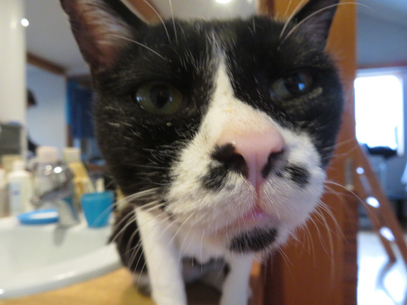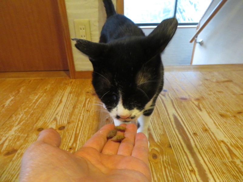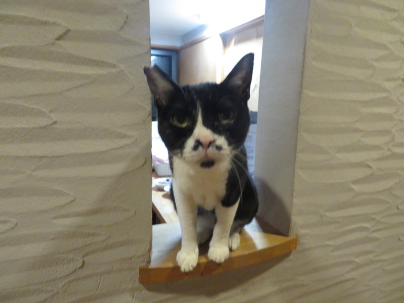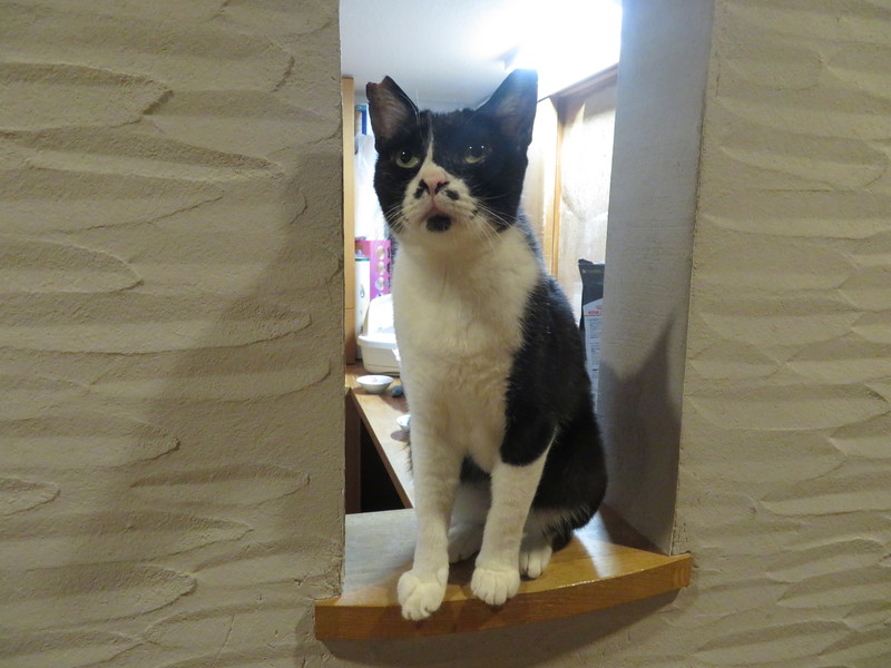 | 特徴(性格など) | 一見おっかなそうなお顔のハチくんですが、穏やかな子です。顔に似合わず「え~んえ~ん」と可愛い声で鳴いたかと思えば「えほ~えほ~」って鳴きながらうろうろしては豪快におしっこをします。もちろんトイレで。「可愛いねぇ」ってこねくり回すとまんざらでもない顔をしておとなしく触らせてくれるいい奴です。 まだごろにゃんではありませんが、近くにいてくれるし付き合いやすい子だと思います。 |