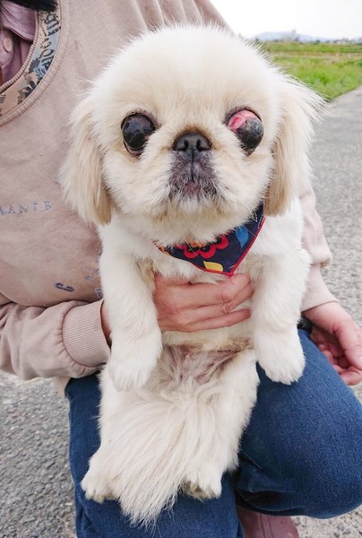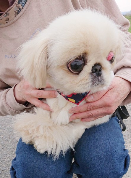 | 特徴(性格など) | 温厚でどの犬とも仲良くできます。 散歩も大好きで、目が見えませんが、散歩コースを普通に歩くことができます。部屋の中も、普通の犬と同じように動き回り目が見えてないというハンディは感じられないぐらい感覚が優れています。 両目が、今後、すぐにではありませんが、眼球摘出になる可能性があります。どうか、恵ちゃん(仮)に会いにきてください。 恵ちゃんは、待っています。 |