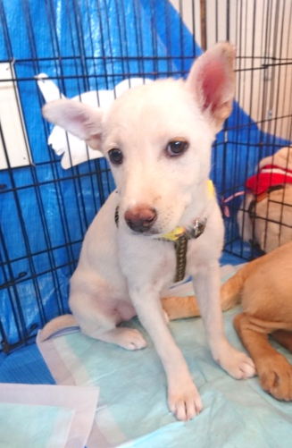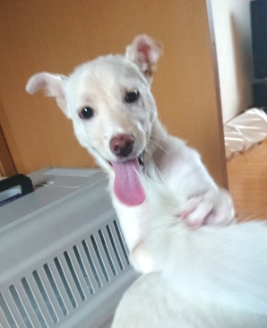 | 特徴(性格など) | 臆病で、まだ人間が怖いです。 好奇心はあるようで、犬や猫が大好きです。 自分から犬に対して遊びに誘います。 栄養状態が悪く皮膚がまだべたついていますが、少しずつ良くなってきました。 元気で食欲はありますので、栄養状態が良くなれば治ると思います。 |