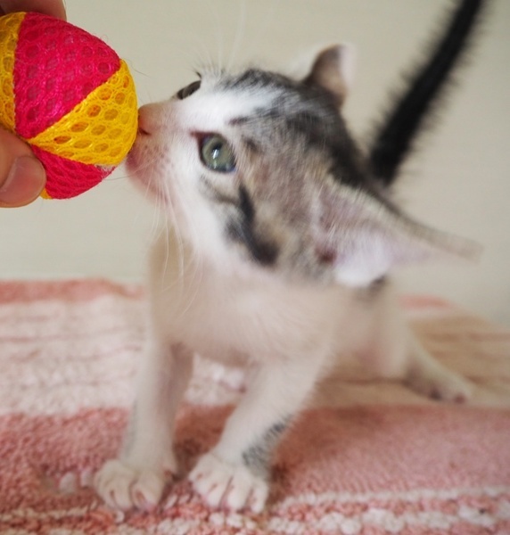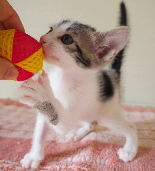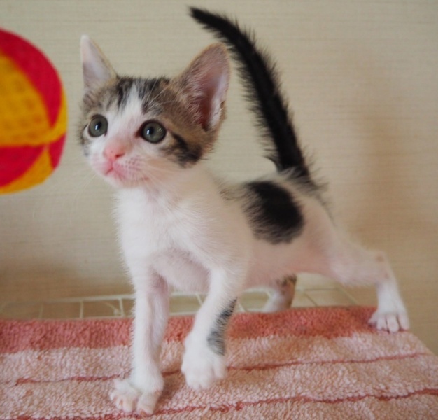 | 特徴(性格など) | 好奇心旺盛な明るい女のコ「いっちゃん」♡ 遊んでるとテンション上がって、いっちょこ前に小さな尻尾がピーンってなったりブワッてなったり♪ そしてそして、甘えん坊♡ はりきり屋さんでキュートないっちゃん♡ 現在、ドライフードを置き餌として、栄養補給のため、一日3回程度の離乳食練習中。 <推定誕生日:2019/3月初め> |