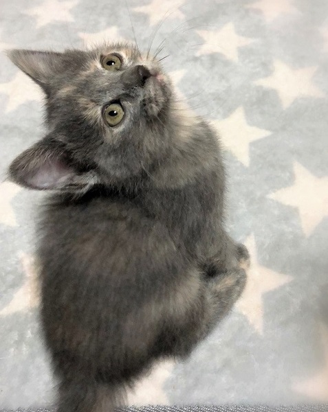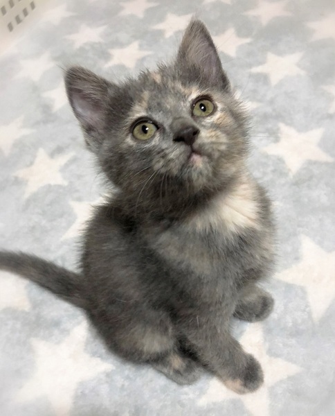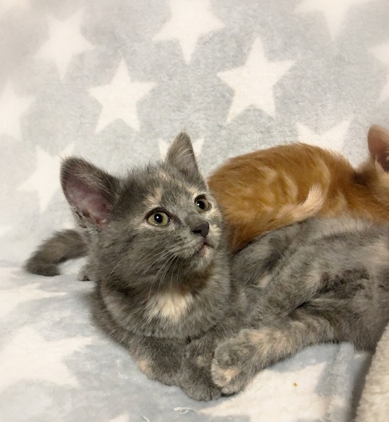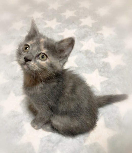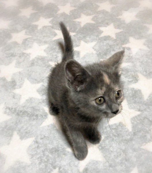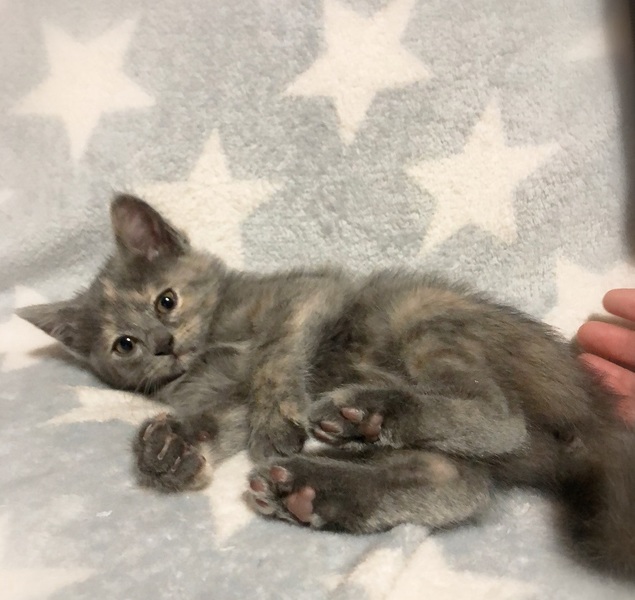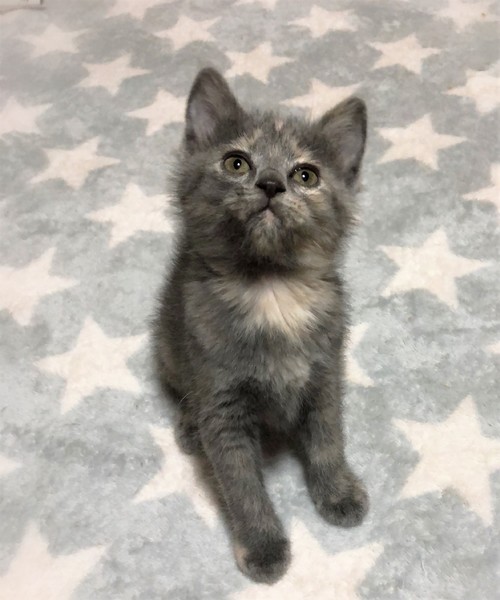 | 特徴(性格など) | 仮名、ティコと呼んでいます。 ちょっと長め被毛・グレーと肌色淡い色のサビ女の子。 環境に慣れるまで少し時間が必要です。 大らかでマイペース。 兄妹で追いかけっこをしていて姿が見えないと思うと、一人ソファーで仰向けで寝ていたりします。 ・バム・ミルズと兄妹です。 |
