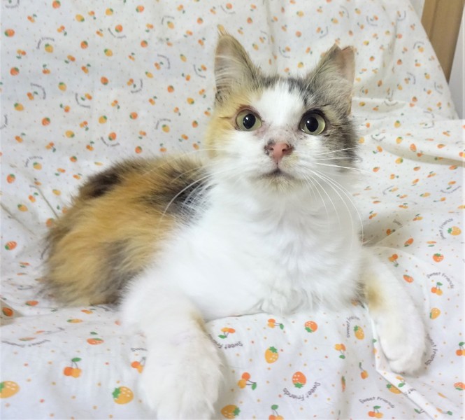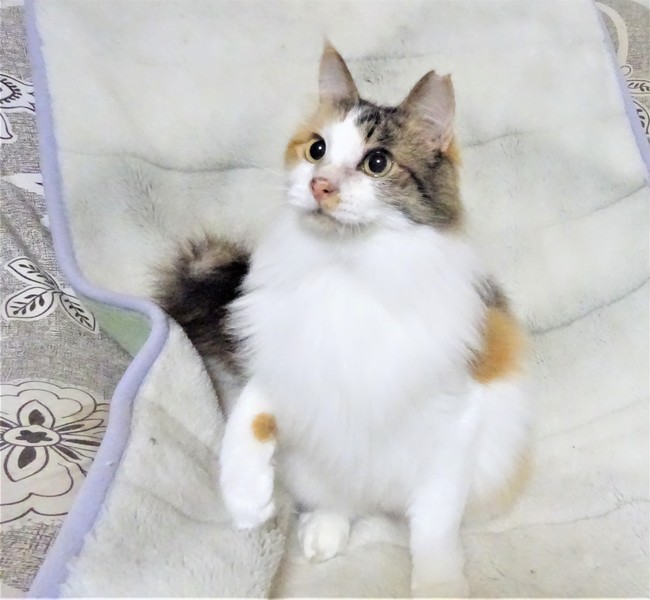| 特徴(性格など) | 淡い三毛の長毛、女子です。飼い主さんが倒れられて意識不明のため、詳しい性格など聞けませんが、病院ではもっと若いかも?と言われています。 ご飯よりも遊びよりも、スリスリが先です。鳴きすぎたのが、声がかすれて出ません。初めは猫と遊べませんでしたが、小さい子猫は抱きかかえるように遊んでやり、大きい子猫には尻尾やかけっこして遊んでやります。 猫じゃらしが好きで夢中になります。 抱っこも脱力して抱けます。 人が好きなので、うんと甘えさせてくださるお家が希望です。 のみ取り済 検便、駆虫済 避妊手術済 ワクチン済 猫エイズ・白血病ウィルスはともに陰性です |