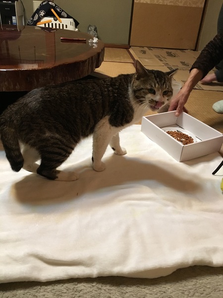 | 特徴(性格など) | 仮名)まる キジ白のまん丸顔の男の子 わんぱくで元気過ぎるほど元気な男の子 大きな猫さんで、とっても懐いています。 おもちゃで遊ぶのも一人遊びもします。 |