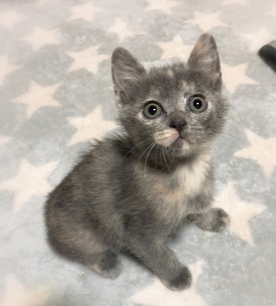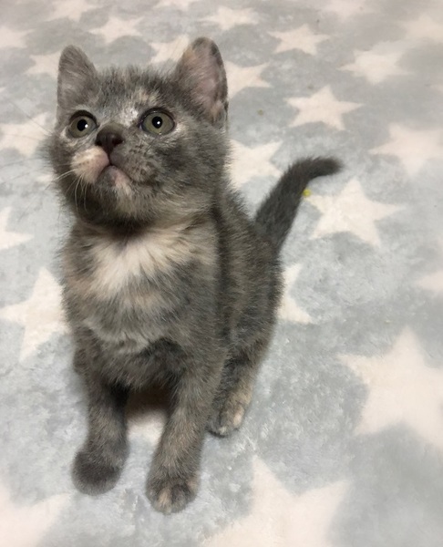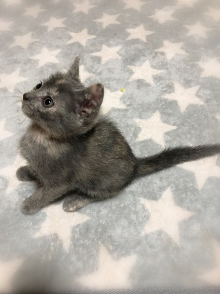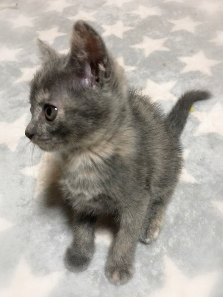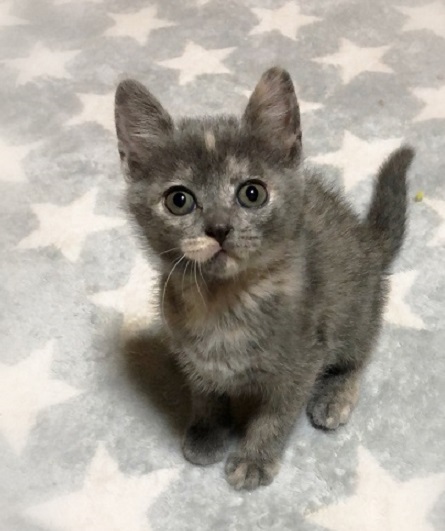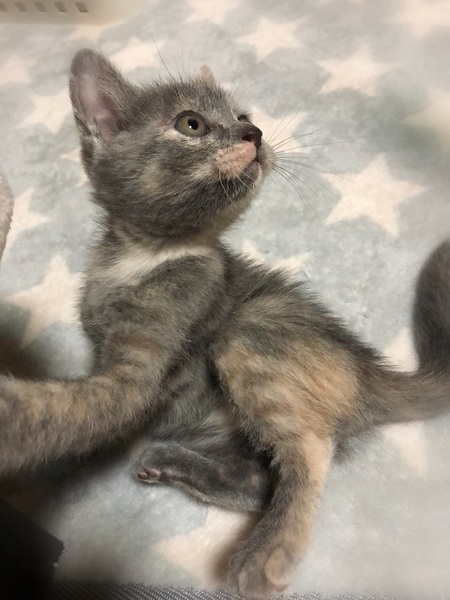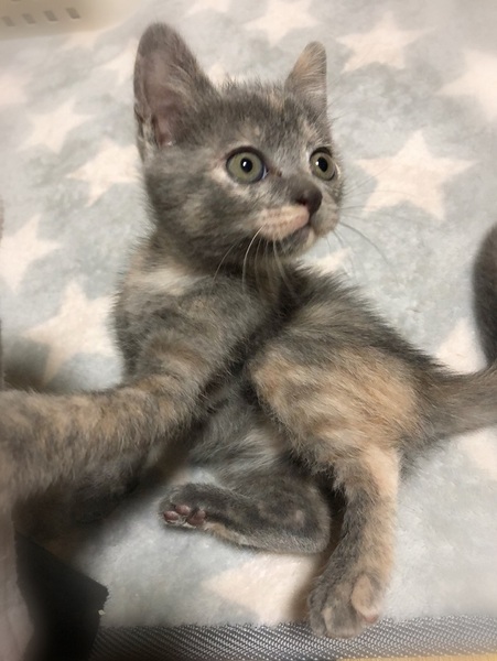 | 特徴(性格など) | 仮名、ミルズと呼んでいます。 グレーと肌色淡い色のサビ女の子。 環境に慣れるまで少し時間が必要です。 玩具で遊ぶ事が大好き、元気な子です。 なかなかのチャレンジャー、高い場所まで頑張って登り、1人で降りれず「たすけてー」と呼ばれる事もあります。 ・ティコ・バムと兄妹です。 |