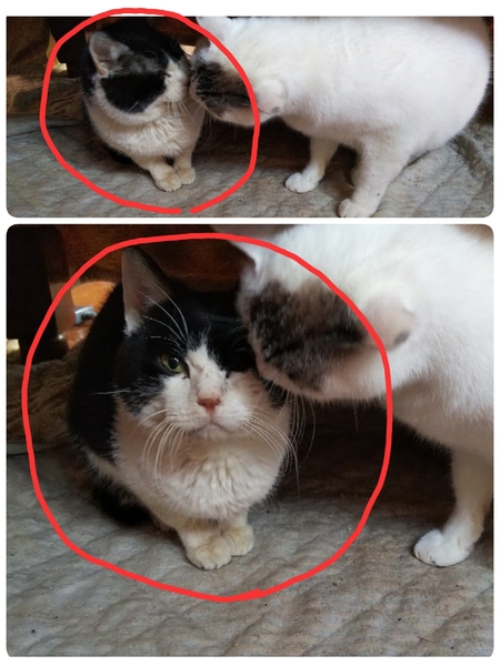 | 特徴(性格など) | ハチワレ猫の雑種で、とても人懐っこく、穏やかな性格です。長い間、一匹で完全室内飼いでしたので、虚勢はしていません。ストレスがかかるとスプレーすることがあるかもしれません。 | ||