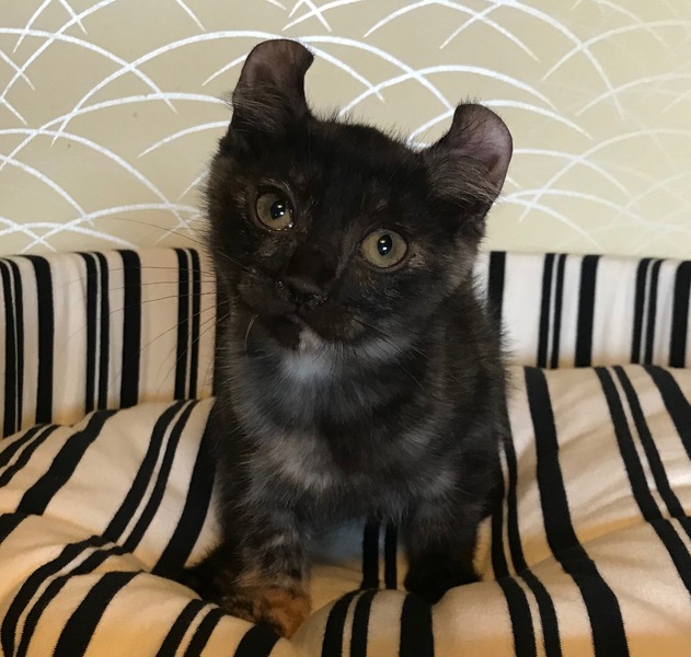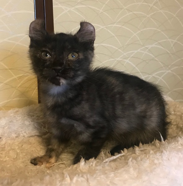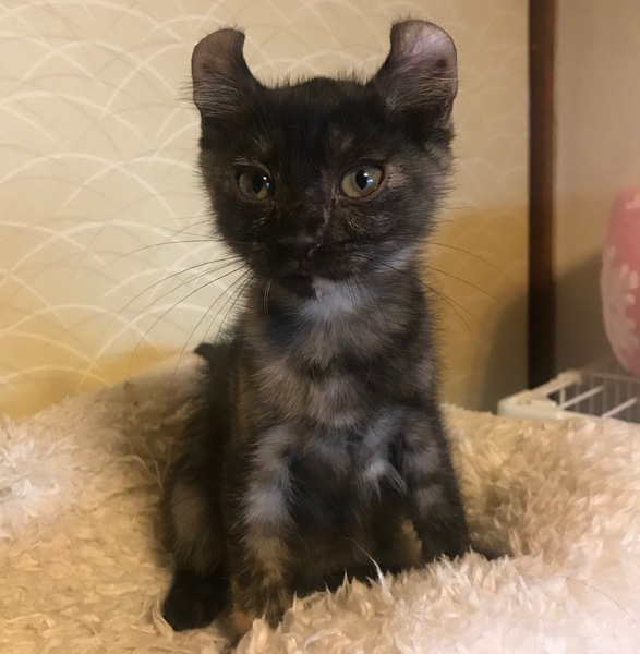 | 特徴(性格など) | 【猫の名前】ポピーちゃん メス(担当コガ) 【毛色・柄】アメリカンカール風 ブラックスモーク クルッと反り返った耳が特徴の女の子、エキゾチックでユーモアな感じが とても可愛いポピーちゃんです。 アメリカンカールの特徴として骨格が太くがっしりとしつつも細身の体型が 良くでています。とても元気に良く遊びます。穏やかな性格です ペット可にお住いの方、お留守番の短い方、又は兄妹一緒が希望ですがお留守番が 短ければ1匹でも大丈夫です。2段ケージが必要になります |