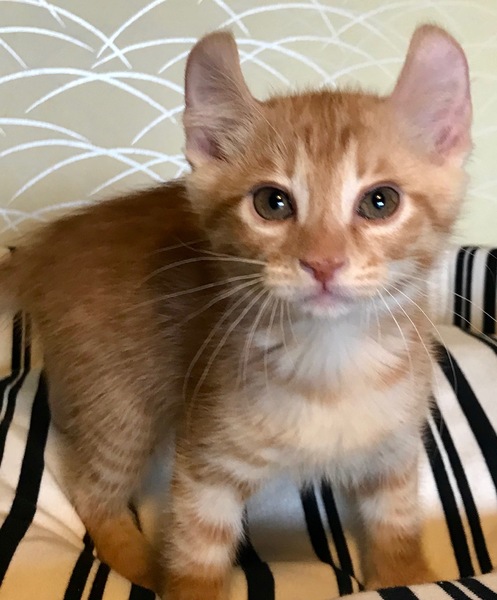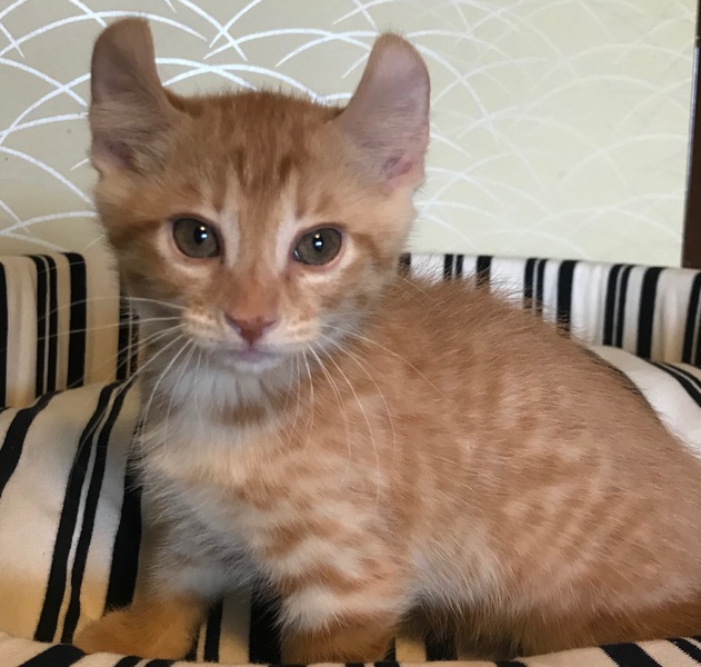 | 特徴(性格など) | 【猫の名前】バク オス(担当コガ) 【毛色・柄】アメリカンカール風茶トラ 尻尾長い クルッと反り返った耳が特徴の可愛い男の子、バクくんです チョコくんとは兄弟です(3月3日生まれ) アメリカンカールの特徴として骨格が太くがっしりとしつつも細身の体型が 良くでています。とても人懐っこくて飼いやすいと思います ペット可にお住いの方、まだ小さいのでお留守番の短い方、又は兄妹一緒が希望です。 |