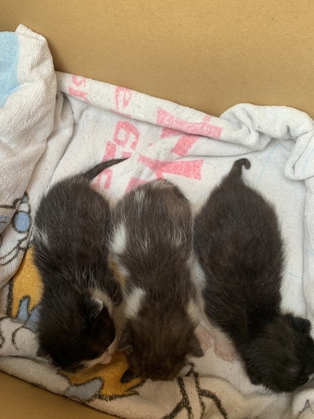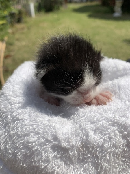 | その他(譲渡条件など) | 写真1 黒ハチワレ 写真2 黒ハチワレ 鍵尻尾 写真3 濃いめのグレー鯖トラ 鍵尻尾 生涯愛情を持ってお世話をして下さる方 まだ生まれて間もない為、ミルクや排尿等の世話、知識のある方。 応募の際に家族構成、配偶者の有無、年齢をご記載の上応募下さい。 |