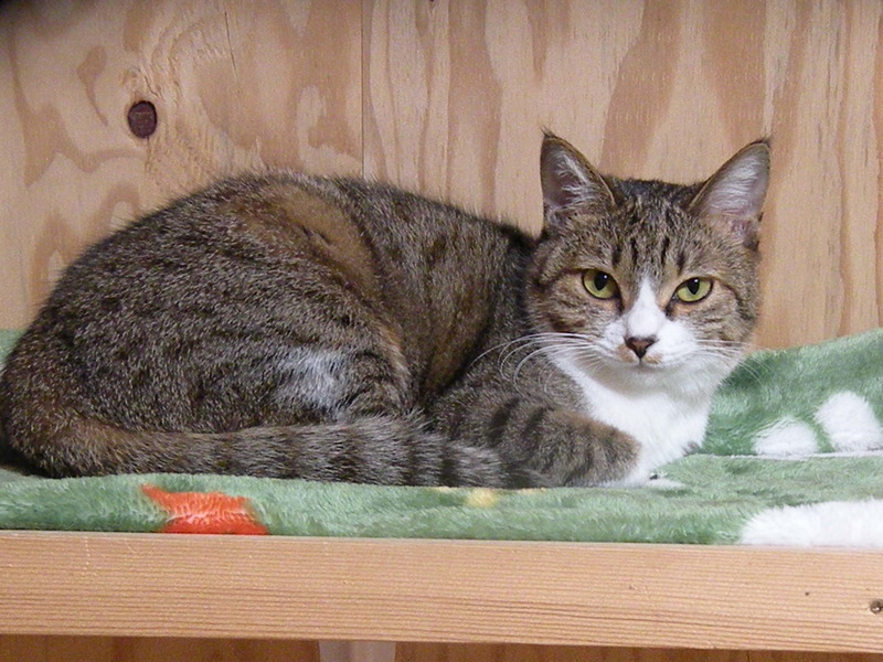 | 特徴(性格など) | あまり鳴かない大人しい子です。人馴れしていて、いつまでも子猫のようにオモチャや他の猫とよく遊びます。キュートでクール。小柄ですが大柄な猫でも怖がらない気丈な子です。ぽん子ちゃんと呼んでいます。 | ||