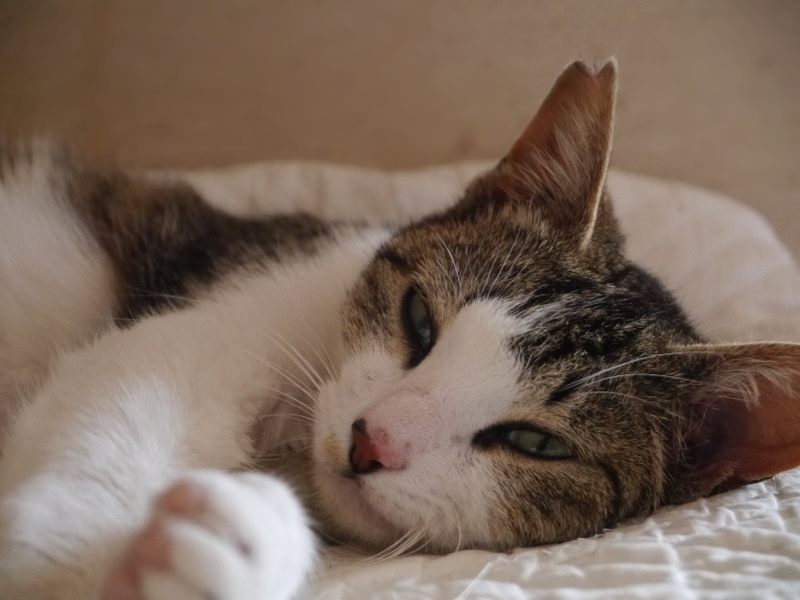 | 特徴(性格など) | 背中全体にキジの模様が入った女の子 小柄で細身、キョトンとした表情がチャームポイント とっても優しくて、行動もゆっくりめの大人しい子です エイズ・白血病ウィルス検査:陰性 |