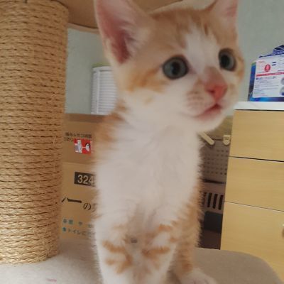 | 特徴(性格など) | 仮に「令くん」と呼んでいます。和くんと兄弟です。 チャシロでかぎ尻尾です。 へその緒付で愛護センターから来ました。 ミルクから育てていますので、とても甘えん坊です。 兄弟の和君と毎日元気いっぱい遊んでいます。 ※兄弟でお考え頂ける方大歓迎です。 預かりブログです。http://jojo148.blog93.fc2.com/ |