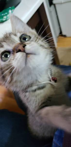 | 特徴(性格など) | 仮に「かえでちゃん」と呼んでいます。 人懐っこくて、元気な女子です。1日フリーにしていても自分のベッドヘいつの間にか寝ています…今はにゃんモックが気に入っているようです。夜寝るときは、スヤスヤ静かに寝ています。先住猫にも動じずよっていきます。トイレもバッチリです。 |
