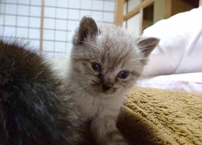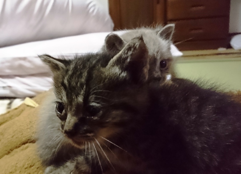 | 特徴(性格など) | 白:オス キジトラ:メス 保護時、目ヤニと鼻水が出ていましたが 診察の結果、風邪とのことで現在目薬をさしています。 |