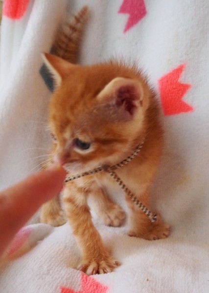 | 特徴(性格など) | ちょっぴりビビりの「コア」くん♡ 元気いっぱいだけど、兄弟たちに押され気味? そっと傍にやってくる甘えん坊です♪ 現在、ドライフードを置き餌として、栄養補給のため、一日3回程度のパウチ&離乳食中ですが、少しずつ自分でも食べてくれていますが、摂取量足らず、1回20~25ccの離乳食、強制給餌、一日3回程度を行っています。 離乳食の強制給餌が大好きで、食べさせろ~~で待っています♪ <推定誕生日:2019/3月末> |