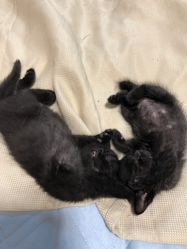 | 特徴(性格など) | 黒猫のオスとメスとグレー×白のオスです。ミルクから育てたので人慣れ抜群です。 今のところトイレは完璧です。お兄ちゃんは缶詰めやドライフードをふやかした物を食べるようになってきましたが妹ちゃんはもう少しミルクがいるみたいです。黒猫のお兄ちゃんは少し毛足が長く長毛種の血が入ってるみたいで脚も大きいので将来大きくなりそうとの獣医さんの見立てです。妹ちゃんは尻尾が少し曲がってますがトイレも1番に覚えて甘えん坊なお利口さんです。できれば兄妹でコロコロ遊んでいるので兄妹一緒若しくは仲良くできる先住猫さんがいらっしゃるお宅の方がもらってくださると嬉しいですが1匹ずつでも構いませんし終生大切に家族として迎えて下さるお宅なら特に細かいことは言いません。 |
