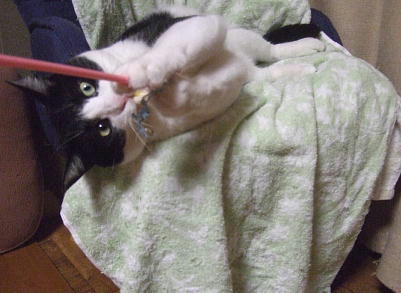 | 特徴(性格など) | 黒白 しっぽ長くイケニャン君です。 大らかな性格で甘えん坊です。 一人遊びに夢中です。 |