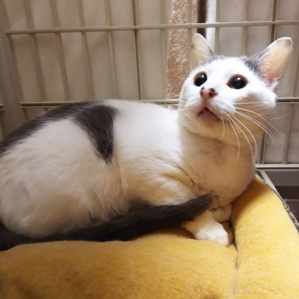 | 特徴(性格など) | 年齢:1歳くらい 毛色:グレー白 しっぽ:長くてまっすぐ カツラを被ったようなハチワレ柄に、鼻に2つの小さなブチ♪ 北島サブ子と呼ばないで♪ ねこけん素敵模様の会会長と親しまれているサーガです。 見るだけで思わず笑顔になってしまう、かわいくて個性的なサーガですが、 劣悪な環境で生まれ育ち、健気にがんばってきました。 性格は穏やかで、おっとりさん。 だけど、猫じゃらしを振ると元気よく遊んでくれます。 1匹飼いでも大丈夫ですが、多頭の環境で育ったため、先住猫ともうまく付き合えると思います。 とってもかわいいサーガを、ぜひ家族に迎えてください♪ ⭐︎ワクチン2回接種済み ⭐︎のみ取り ⭐︎駆虫、検便済み ⭐︎トイレトレーニング済み ⭐︎ウイルス検査(エイズ・白血病)陰性 ⭐︎不妊去勢手術済み ⭐︎マイクロチップ挿入済み |