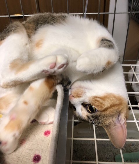 | 特徴(性格など) | 【猫の仮名】 すずめちゃん 【毛色・柄】 三毛猫(担当 桂) なでられると、ゴロンしてお腹を出します。 遊ぶのと食べるのが大好き、おてんばです。 健康状態 良好 ●避妊手術 済 ●ウイルス検査 陰性 ●ワクチン 2回 ●蚤取り 1回 ●駆虫 1回 ●便検査 1回 ●シャンプー 1回 |