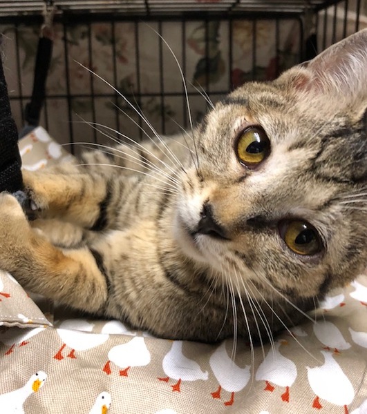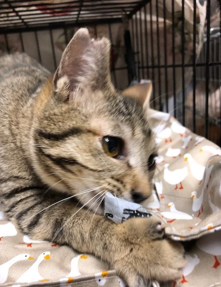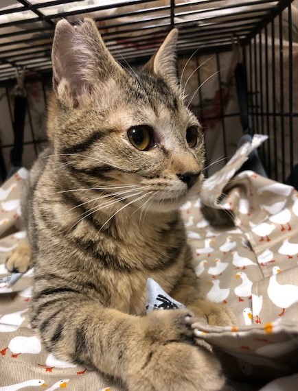 | 特徴(性格など) | 【猫の仮名】 にこちゃん 【毛色・柄】 キジトラ(担当 桂) 小さめな子です。 おっとりしていながらも、遊びのが大好き、ちょっとおてんば。 爪切りも抱っこしながら、させてくれます。 ※メスですが、耳先カットが反対の右になっています。 健康状態 良好 ●避妊手術 済 ●ウイルス検査 陰性 ●ワクチン 2回 ●蚤取り 1回 ●駆虫 1回 ●便検査 1回 ●シャンプー 1回 |