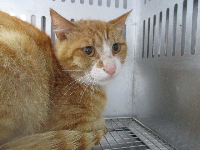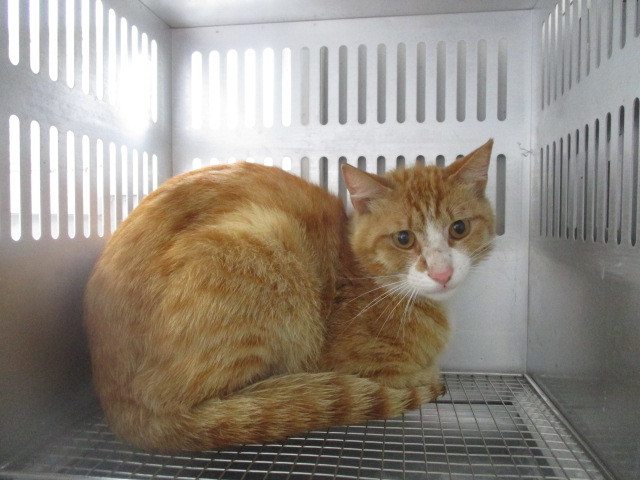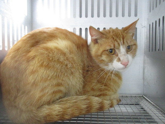 | 特徴(性格など) | 管理番号123 光市塩田にて捕獲された茶トラ白の猫ちゃんです。収容されたばかりで、緊張して過ごしておりますが、威嚇や攻撃などはありません。 フードは食べているようですが、現在センターに収容されているため、詳しい検査はできません。お迎え後は、かかりつけの病院にて受診をお願い致します。 ※尚、エイズ、白血病の検査もセンターでは行っておりません。また、募集する側も引き出して検査などに連れて行くことはできません。病気が気になる方のご応募はご遠慮下さい。 ※センターでは猫の捕獲はしておりません。 この子の状況をご理解の上、温かいご縁をお待ちしております。 |