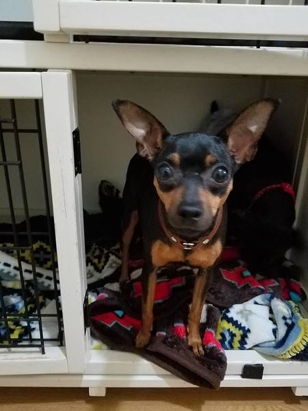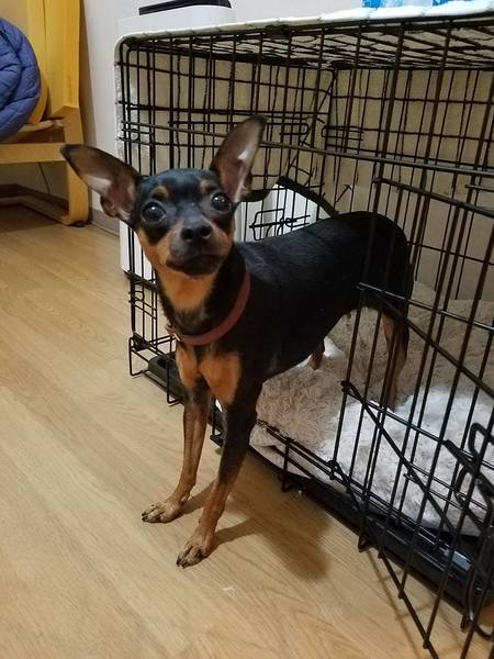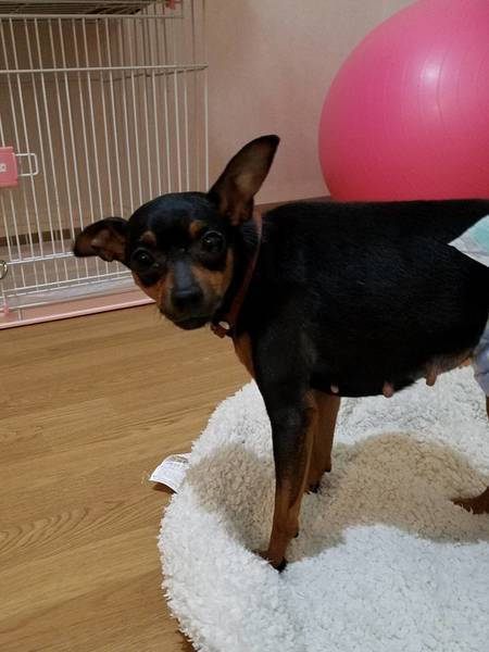 | 特徴(性格など) | ■特徴(仮の名前:みずな) ミニピン ♀ 4歳 体重3.8キロ(要ダイエット) ■性格・暮らし ・ビビりですが甘える仕草は見られます。 ・対他犬・猫に攻撃性見られません。 ・ケージでお留守番、就寝出来ます。 ・トイレ認識あり。 ・お散歩トレーニング中 ■今までに行った医療行為 ・避妊手術 ・フィラリア抗原検査(-) ・血液検査 ・検便 ・混合ワクチン接種 ・マイクロチップ装着 ・歯石除去 ・耳ダニ検査(-) |