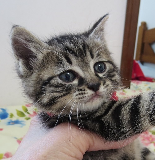 | 里親募集する理由 | 区内の某マンションの入り口辺りに置いていかれました。 早朝散歩に出かけた時にはいなかったそうですが、帰ってきたら子猫の大きな鳴き声がしていて発見され、そして保護されました。 地域ネコの管理されている場所で、外ネコのお母さんが置いていくわけはなく、人の手に慣れているちびっ子でした。 |