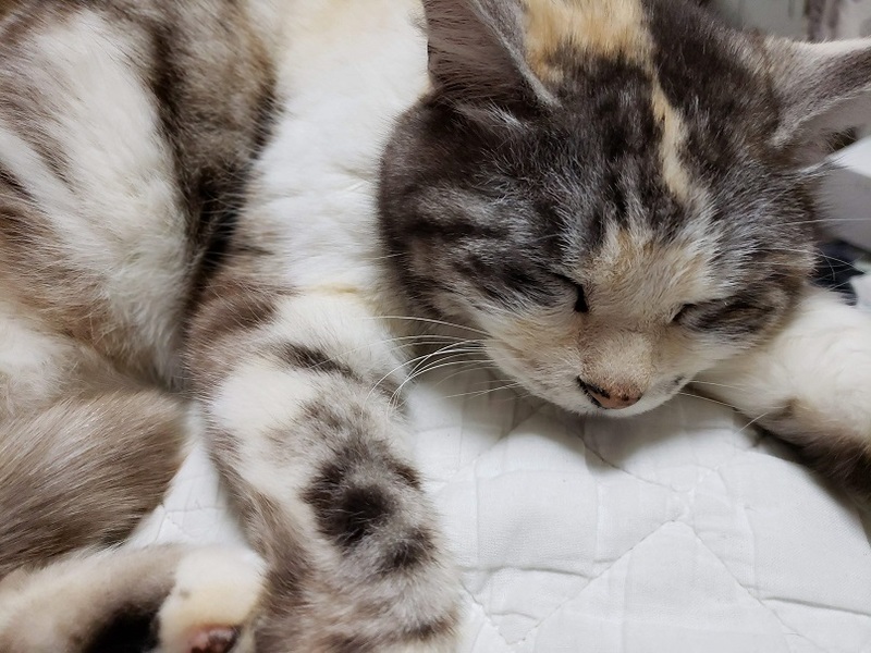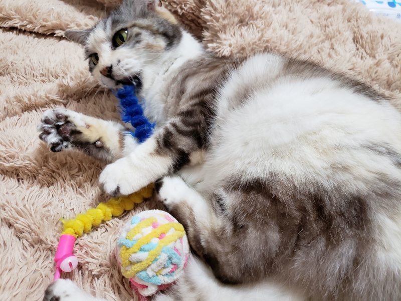 | 特徴(性格など) | 【名前】いちごちゃん 【柄等】丸顔で少し毛が長めのパステル三毛、尻尾長い。アイラインが入っていて目力ばっちり♪ 【性格】人間がとにかく大好きで、べったりさんです。しかもオモチャが大好きでよく遊びます! ソファに座れば隣に寄り添い、ベッドに入れば一緒に寝る、という甘えん坊さんぶりです。 ただ、極度の猫嫌いであり、保護猫の多い我が家ではストレスをためてかわいそうな思いをさせています(涙) |