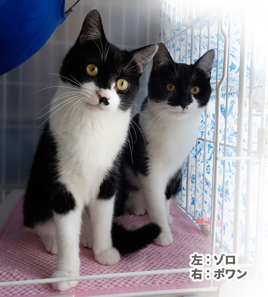 | 特徴(性格など) | 5月19日(日)12:00~16:00(最終申込15:30) ねこざんまい譲渡会に参加予定です! 《会場のご案内はこちら》 https://ameblo.jp/neko3mai/entry-12460948419.html 希望の猫ちゃんがいる場合は、12時に会場へお越し下さい。 先着順ではございませんが、同じ猫ちゃんに複数名のご希望者さまがいらっしゃる場合は、12時半でお見合い受付を締め切らせていただく場合がございます。 ※譲渡会ご来場につきまして、事前予約は不要です ★★★ご来場前に必ずご確認下さい★★★ 《里親様へお願いはこちら》 http://www.neko3mai.com/condition/condition.html 《家族募集中猫ちゃん一覧はこちら》 http://www.neko3mai.com/entrycats/entrycats.html ◆ 名 前 ◆ ゾロくん ◆ 年 齢 ◆ 9ヶ月 ◆ 性 別 ◆ 男の子 ◆性格は?◆ 兄妹の中でも際立った存在感と明るい性格のゾロくん! 賢くて機敏で強くて、面白い、ウケるコです(*^^*) 甘え上手ですぐ体に乗ってくる! 肩乗りだってしちゃいます。 乗れるまで何度もチャレンジしてきます(*^^*) 水を変えたら真っ先に飲む。 猫部屋からの脱走も真っ先に試みる!! 行動力抜群のゾロくん。 お顔も可愛いです☆ 里親募集中のポワンくんと兄弟で、2匹とも、たいへんたいへん人懐っこいです♡♡♡ ポワン https://satoya-boshu.net/foster/detail.php?@DB_ID@=295730 先に巣立った姉妹の2匹もそれぞれのお家で先住猫さんと仲良くなっており、 人にも猫にもフレンドリーな子たちです。 普通なら緊張する譲渡会で、兄弟共に元気一杯遊んでいます! ペットではなく、共に暮す家族の一員としてお迎えくださるお家を希望しておりますので お世話してくださるご家族皆さん、またはご夫婦ご一緒に会いにいらしてください。←重要 お留守番が少ない、またはポワンと一緒、あるいは優しい先住猫さんがいるなど、 ゾロがさみしくないファミリーを希望しています |