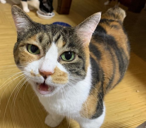 | 特徴(性格など) | 【仮名】絹(アルト)ちゃん 【性格】小さな体で頑張って6チビちゃんを元気に育てた絹ちゃん♪ 子育て中は栄養を吸い取られガリガリだったのに育児が終わると。。。? ありゃ~!ふくふくの三毛ニャンに変身しちゃいました! でっかいオシリがチャームポイントです♪ 毎日出窓で日向ぼっこするのが日課です(^-^) 今では誰よりも先にオヤツが欲しい!愛情が欲しい!! ナデナデもブラッシングも大好き❤ 抱っこだって1分位はゴロゴロ言って頑張ります。 環境に慣れるまで少し時間はかかるかもしれませんので絹ちゃんのペースで見守って下さい☆ |