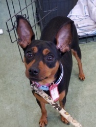 | 特徴(性格など) | ■特徴(仮の名前:あわび) ミニピン ♀ 4歳 体重6キロ(要ダイエット) ■性格・暮らし ・ビビりですが甘えん坊です。 ・対他犬に攻撃性見られません。 ・ケージレスト練習中 ・トイレ、お散歩練習中 ■今までに行った医療行為 ・避妊手術 ・フィラリア抗原検査(-) ・血液検査 ・検便 ・混合ワクチン接種 ・マイクロチップ装着 ・歯石除去(抜歯) ・耳ダニ検査(-) |