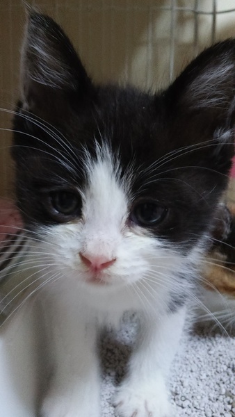 | 特徴(性格など) | 白黒模様がかわいい元気な子猫ちゃんです。 | ||