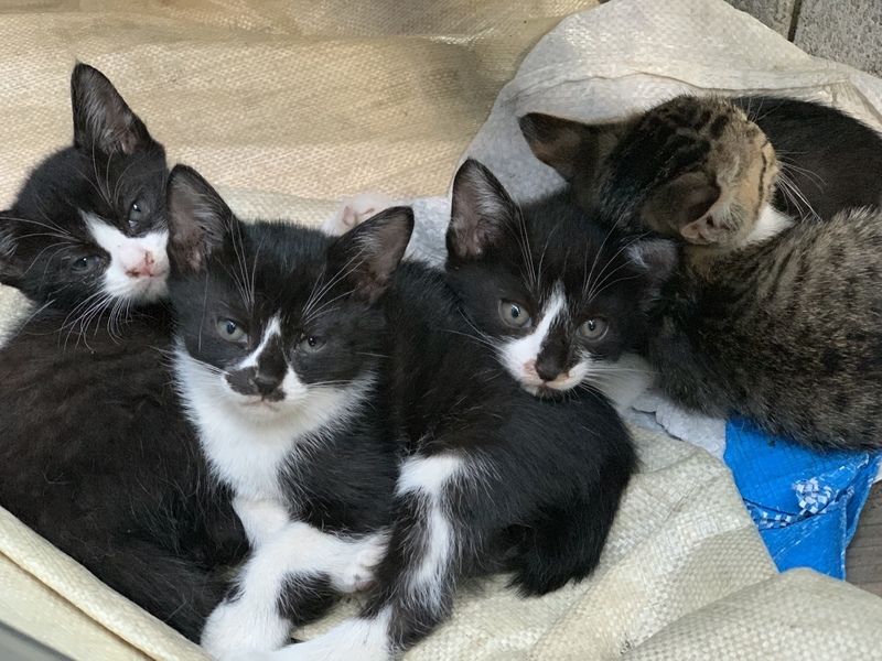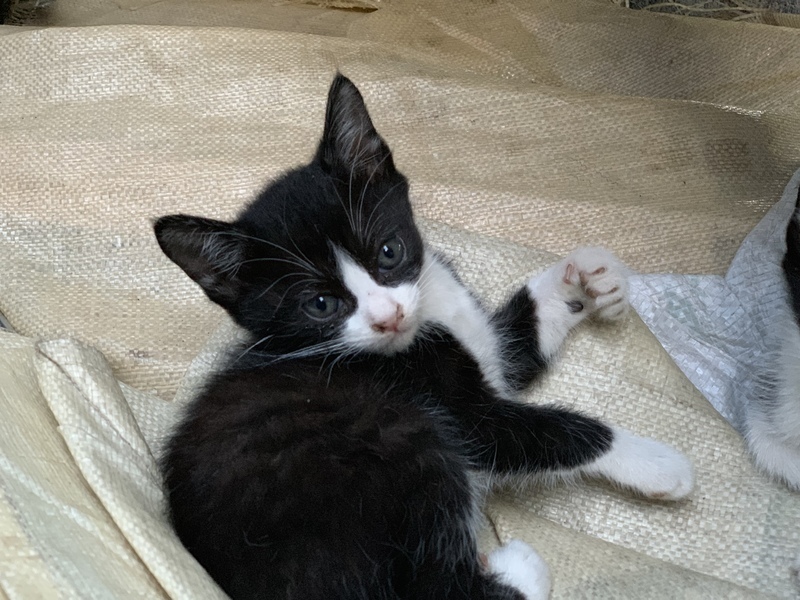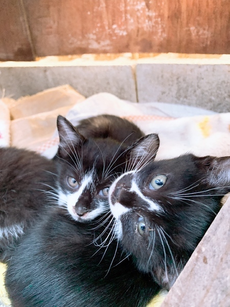 | 特徴(性格など) | キジ♀4匹の中では1番小さく大人しい。 白黒♀(鼻に白い筋) 白黒♂2匹 |