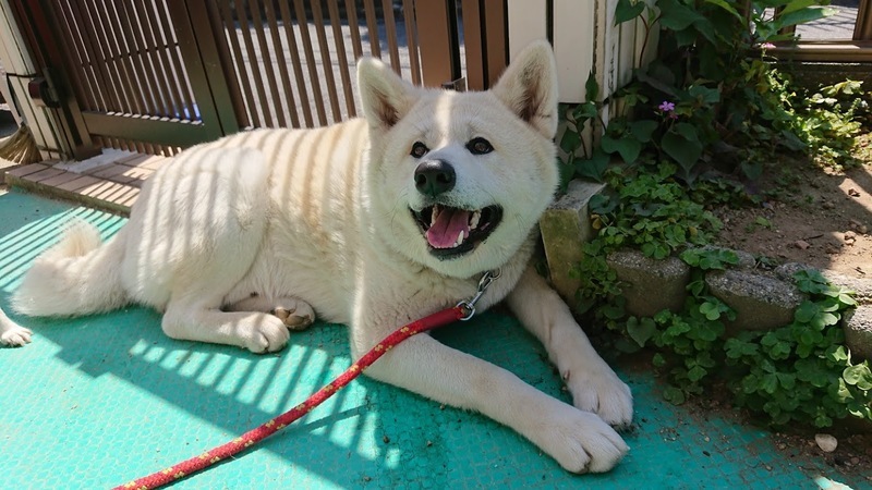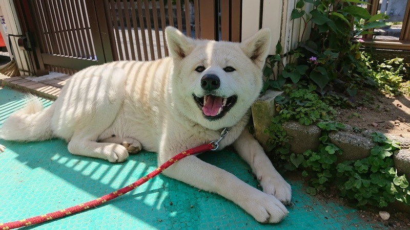 | 特徴(性格など) | 3歳牡の秋田犬、見た目は白ですが血統書での毛色は赤。 とてもおっとり大人しい男の子です。 迷子の柴犬が寄って来て離れなかった時も、優しく迎え入れそばに寄り添っていました。 人見知りもしません。先住犬とも仲良くできると思います。 |