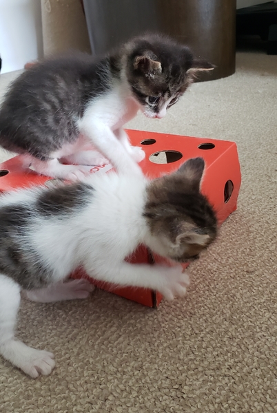 | 里親募集する理由 | マンションの掃除用具を入れるところから仔猫の鳴き声がしていたので覗いたところ、母猫は逃げてしまいました。5匹の仔猫を保護して里親さまを探してあげる事にしました。 | ||
