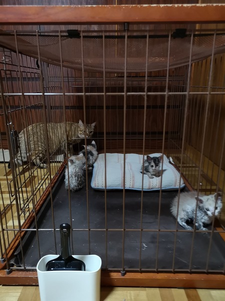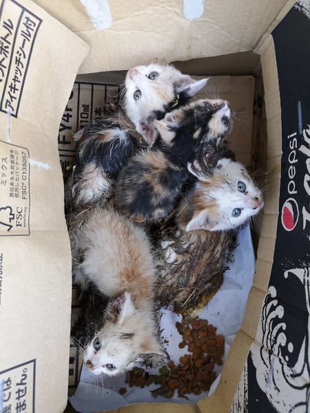 | 里親募集する理由 | 犬とお出かけ中に草むらの中に段ボールで捨てられていました。家ではすでに犬二匹、猫も飼っておりこれ以上はお世話出来ないので。でも、見ないフリも出来ませんでした。 |