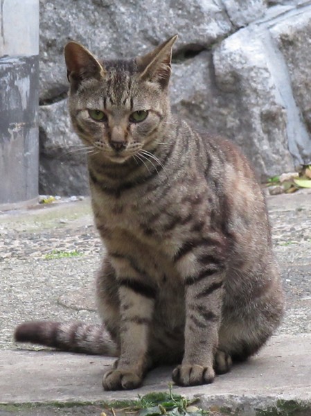 | 特徴(性格など) | 当方が世話をしている野良猫さんとは縄張りが違うのですが、こちらの猫さんのたちを好きなようで仲間に入ってきてしまいました。若い新参者らしく低姿勢で大人しくわきまえています。多少緊張するようですが、人に触らせてくれますし、後追いもします、抱えて運んだりも受け入れます。しょぼんと佇んでいたり、伸び伸びと寝ころんでいたりする姿が多いです。♂ですが、野良で生存するのは難しい優しいタイプです。人と一緒に室内で終生を送るほうが似合う穏やかな性格です。 普通のキジ柄に見えますが、父親譲りの白い毛が多い子です(写真は良くありませんが、3枚目の毛色が最も実物に近いです)。精悍な目鼻立ちも父親譲りで、性格に反して目つきが歌舞伎役者のようにキリっとしています。 子育て上手なキジ♀と、飼い猫としか思えない巨体で美しくケンカの強い白キジ♂を両親にもつ、しっかりした健康体です。寒さに弱いようで、鼻がくしゅくしゅしてしまいます。食欲は旺盛で何でも食べますが、魚の骨などワイルドなものは食べられません。お皿に入っていることを好みます。食に関しては、飼い猫の趣向なのだと思えるので、育てやすいと思います。幼猫はちょっとした体調の変化が命取りになりますが、ここまで育ってくれたので、そうした心配もありません。 |
